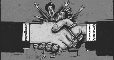 Aποκηρύσσουν μετά βδελυγμίας την ταξική πάλη, κηρύσσουν τη σύμπραξη και τη συνδιαχείριση, υποκλείνονται στο «διάλογο», παραπέμποντας τη ζώσα διεκδίκηση σε ατέρμονες συνδιαλλαγές και συμφωνίες κάτω από το τραπέζι.