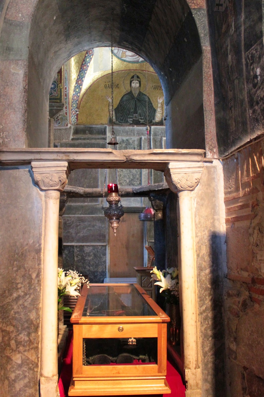 Η εκκλησία αυτή αφιερώθηκε στον Όσιο Λουκά και μέσα σ’ αυτήν τοποθετήθηκε η λειψανοθήκη του.